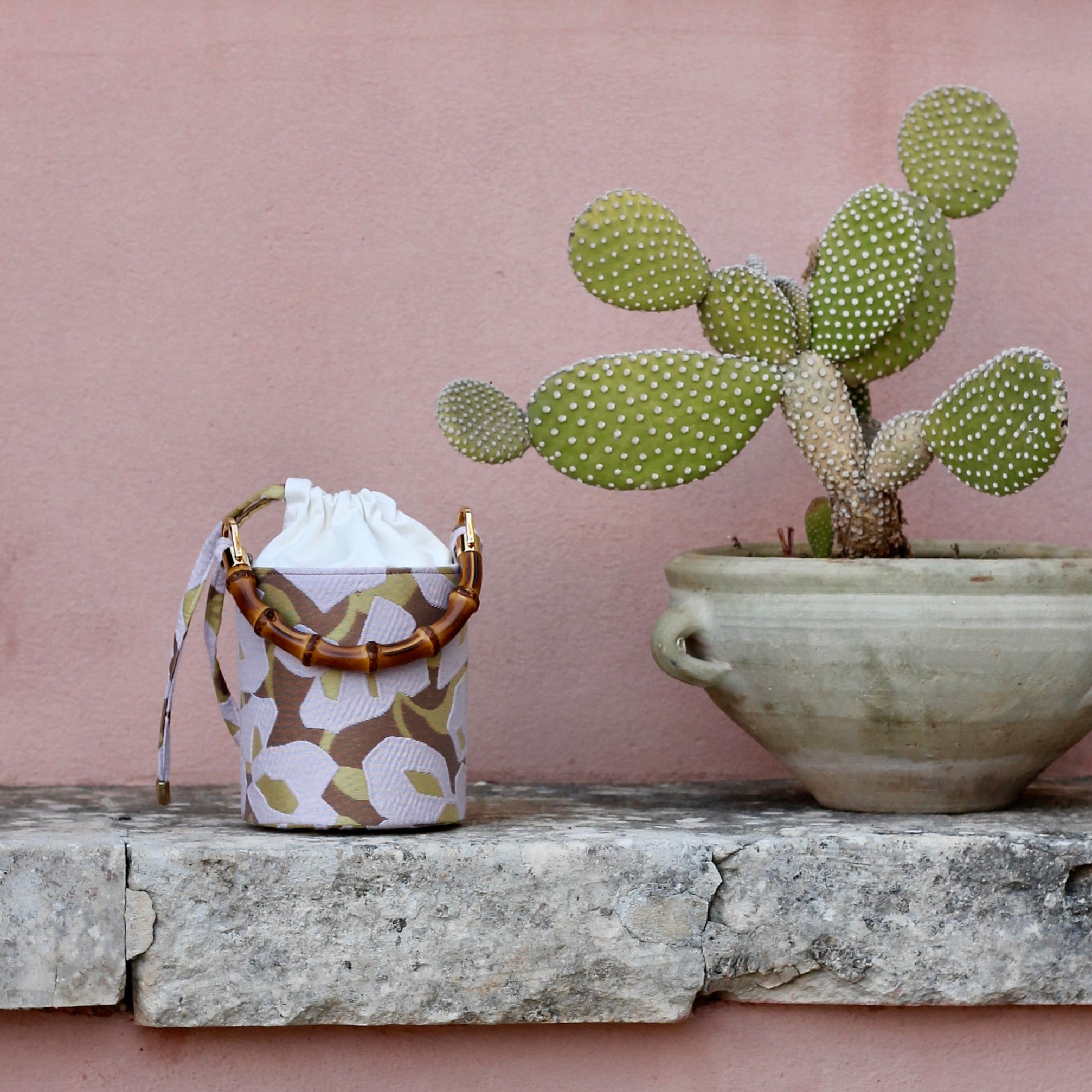 La struttura del secchiello è realizzata in pelle: lo rende flessibile, ma molto resistente. L'interno è rivestito con una fodera morbida e pratica chiusura a coulisse. L'esterno del secchiello è rivestito con tessuti di diversa composizione, colore e fantasia. Ogni secchiello è confezionato con manico in bambù e tracolla. Esistono due dimensioni: Regular, pratica e classica, e Mini, immancabile e capiente.