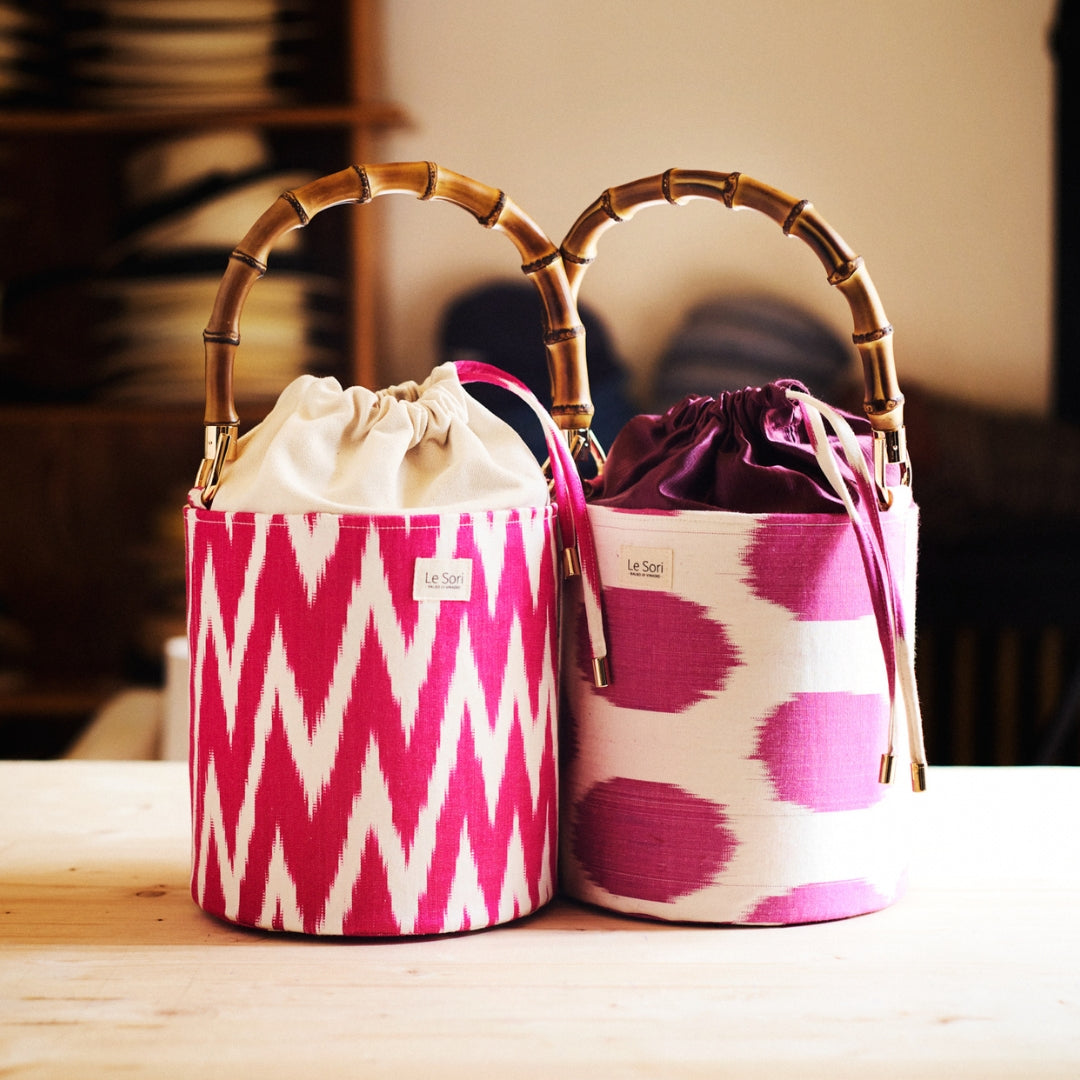Le borse sono realizzate a mano in un piccolo laboratorio biellese, con interno in pelle ed esterno in tessuto scelto per riflettere il nostro spirito: creatività senza limiti. Ogni borsa è un piccolo capolavoro. Sembrano tra loro simili, ma ognuna è unica.